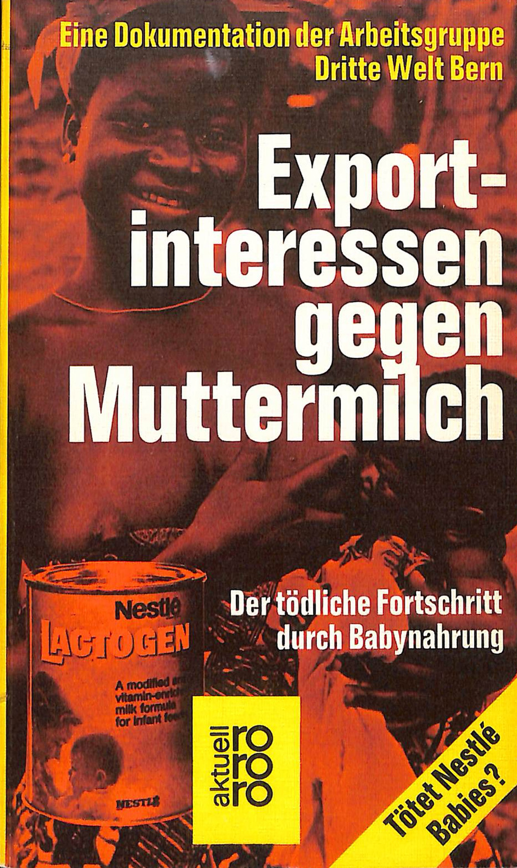Das Buch Exportinteressen gegen Muttermilch: Der tödliche Fortschritt durch Babynahrung (1976) der Arbeitsgruppe Dritte Welt Bern steht in engem Zusammenhang mit dem sogenannten Nestlé-Boykott und den Diskussionen um den Nestlé-Prozess der Autoren. Es dokumentiert die negativen Folgen des Einsatzes industrieller Babynahrung in Entwicklungsländern, insbesondere durch aggressive Praktiken des Nestlé-Konzerns. Kritisiert werden Marketingstrategien wie Gratismuster, Werbung und die Einflussnahme auf medizinisches Personal, die das Stillen verdrängen. Dadurch verschlechtern sich die Lebensbedingungen von Säuglingen in Regionen mit unzureichender Hygiene und begrenzten Ressourcen. Das Buch argumentiert, dass diese Praktiken nicht nur die Gesundheit von Kindern gefährden, sondern auch Abhängigkeiten schaffen und soziale Ungleichheiten verstärken. Die Autoren fordern ein Ende solcher Praktiken und die Förderung nachhaltiger, lokal angepasster Ernährungsweisen. Das Buch wurde ins Französische, Spanische, Italienische und Japanische übersetzt.