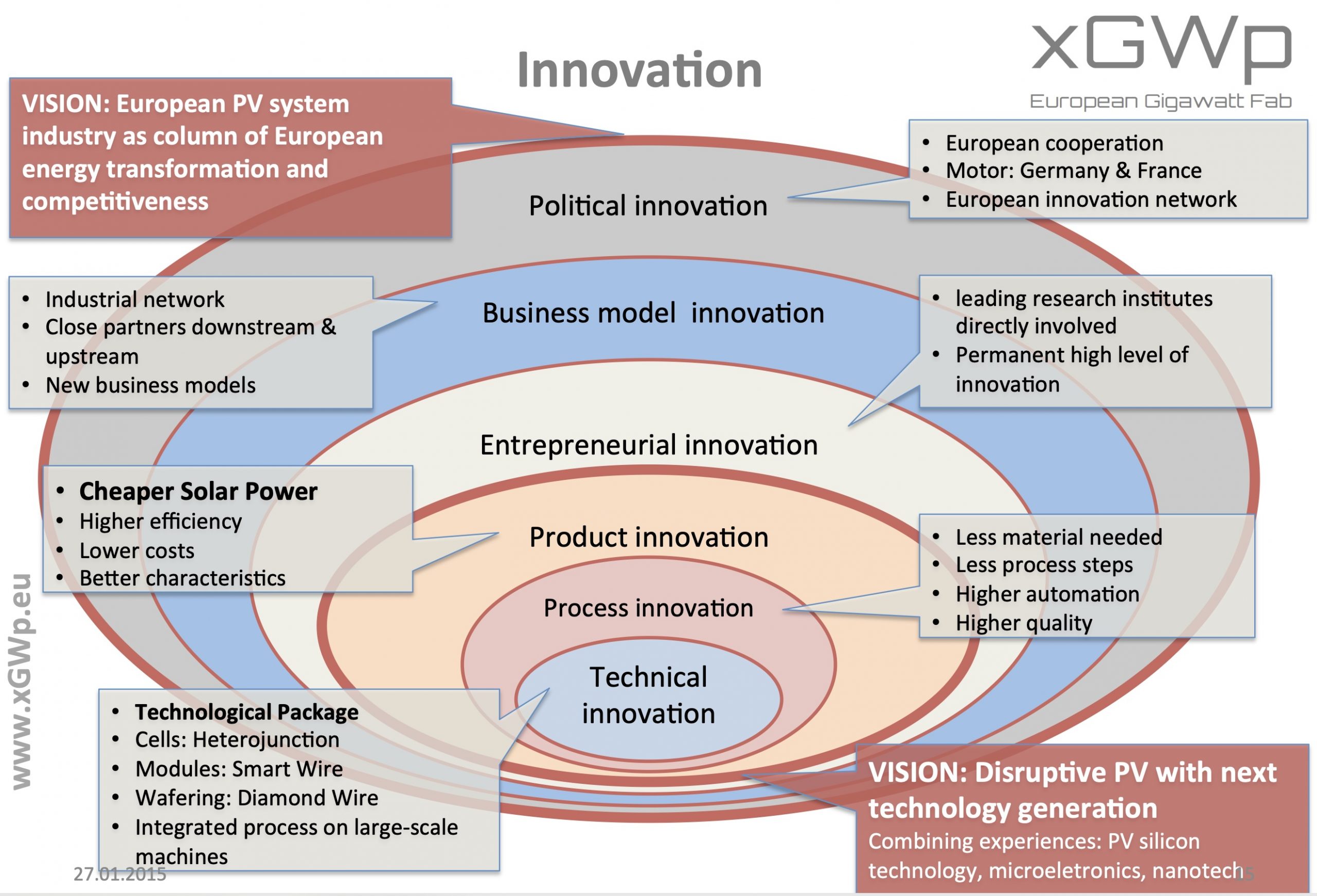Weber, Eicke, and Schleicher-Tappeser, Ruggero (2015): Need and opportunities for a strong European Photovoltaic Industry – The xGWp Approach. Presentation. „Scientific Support to Europe‘s Photovoltaic Manufacturing Industry“ Round Table of the European Forum for Science and Industry Brussels, January 27, 2015.