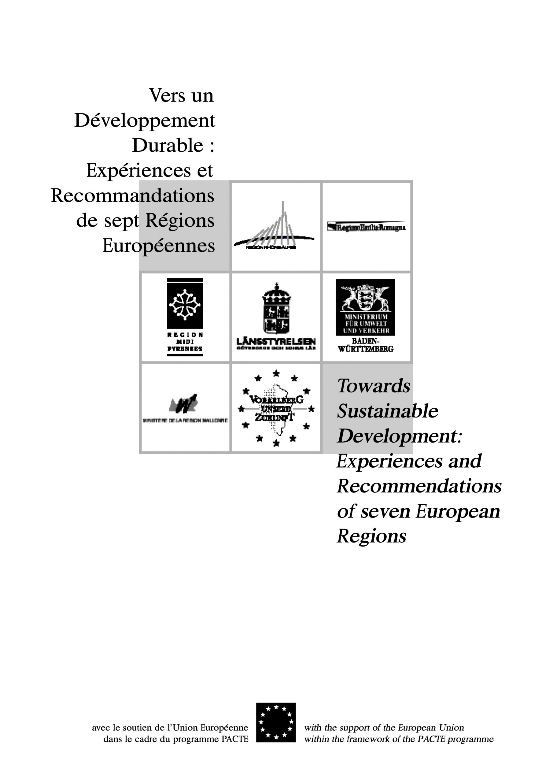 This report documents the cooperation of seven European regions within the EU PACTE programme to explore sustainable development at the regional level. The participating administrations—from Baden-Württemberg to Midi-Pyrénées and Vorarlberg—shared experiences, assessed 15 best-practice projects, and developed a framework of ten sustainability principles spanning environmental, economic, socio-cultural, equity, and systemic dimensions. The study shows that successful strategies rely on local involvement, partnership, and participatory governance rather than top-down approaches. While interpretations of sustainability varied across cultures, the joint process created a common language and practical recommendations: promote win-win solutions, strengthen governance styles, learn across regions, define action plans, and act without delay. The report stresses that sustainability is both necessary and profitable, requiring adaptive, context-sensitive policies.